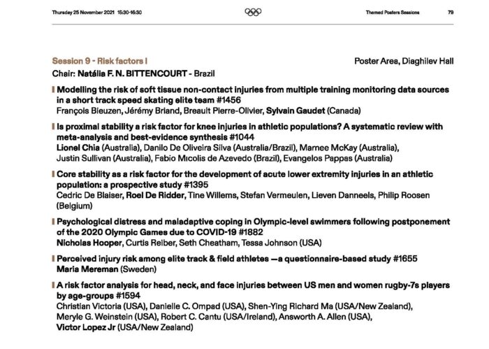 Dr. Victor Lopez Jr, Dr. Richard Ma, Mr. Christian Victoria, Prof. Meryle G. Weinstein, & Dr. Answorth A. Allen, et al will present their work for the 3rd time at the International Olympic Committee World Conference on Prevention of Injury & Illness in Sport, November 25-27, 2021, in the Principality of Monaco.